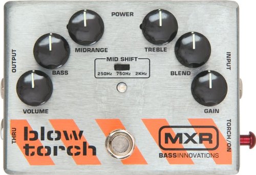 The M-181 MXR Bass Blowtorch bass overdrive pedal is made to deliver the hottest sounds this side of Hades--from a tube-like growl to full-blown distorted madness. Because the Bass Blowtorch's overdrive is focused in the midrange frequencies, you'll retain your low-end thunder and high-end sizzle while the overdriven mids cut through any mix. An active 3-band EQ with a mid shift switch provides precise signal balancing, while the Blend knob lets you balance the distortion with the direct signal for the exact tone you're after. 18-volt performance equals increased dynamic headroom, clarity, and low noise no matter the volume level, and true bypass circuitry means it's really off when you want it off, leaving your signal completely unaffected.